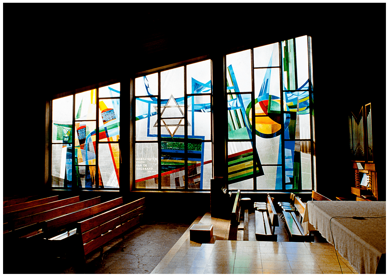 Rooms-katholieke kerk De Burght, Uithoorn. Glas-appliqué. 1982