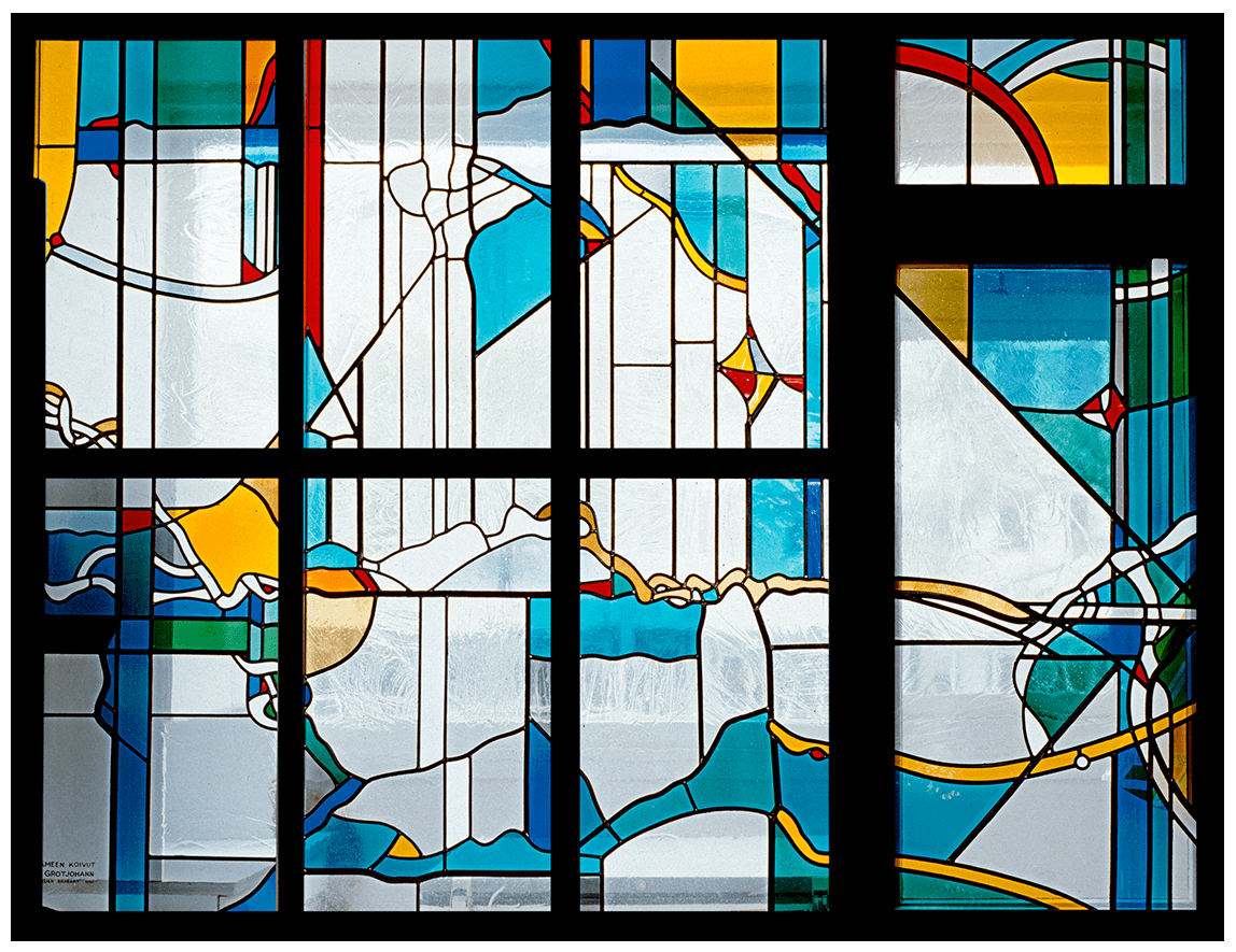 Fins glasraam, woonhuis in Amsterdam. Glas-in-lood, 1987
